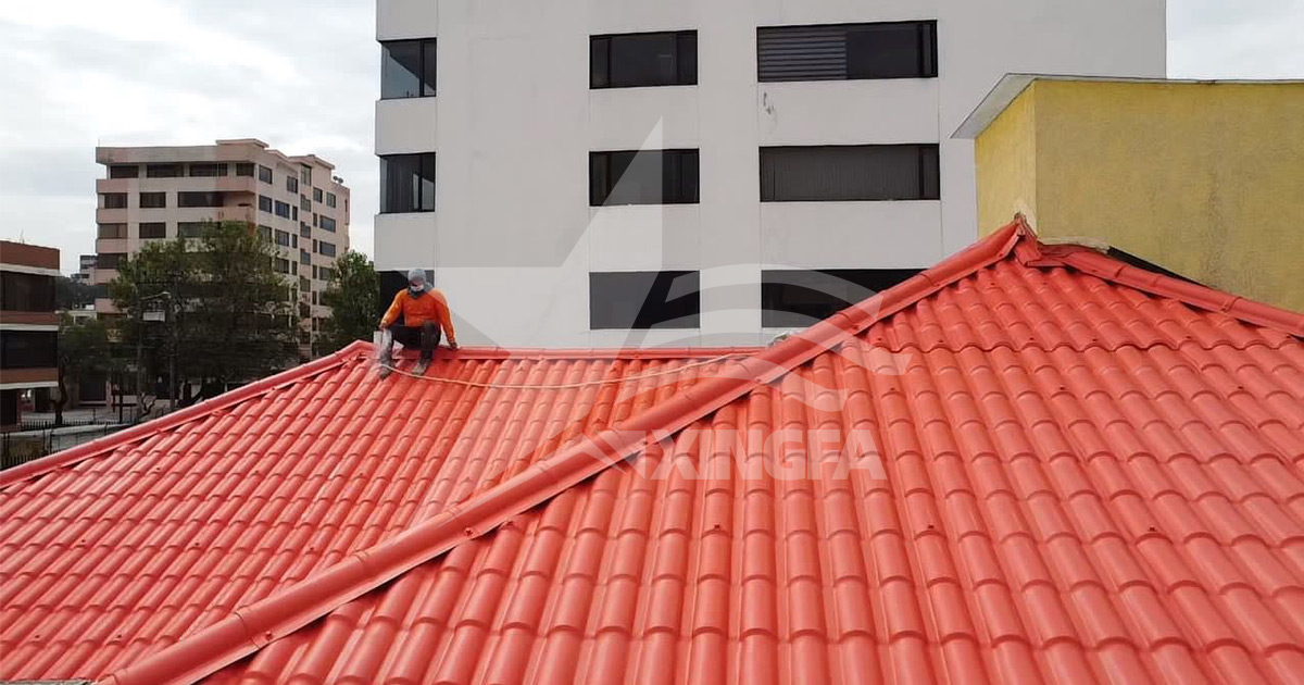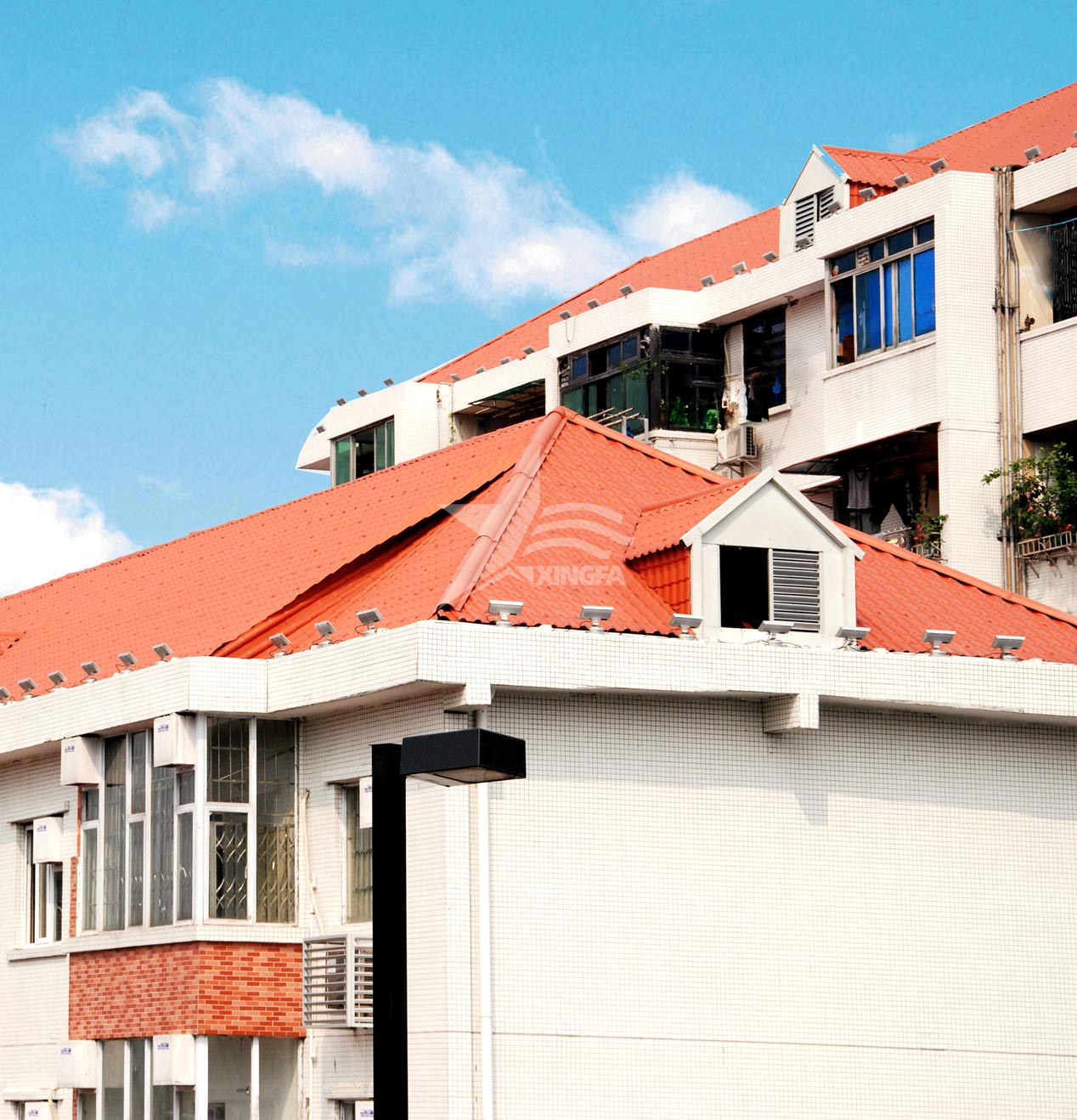在这些问题区域,雨水会侵入屋顶并进入室内,造成漏水和渗水现象,对修补和维护工作带来不小的烦恼。然而,传统的金属板和水泥砂浆修补方法却并不能百分之百地保障屋顶不再渗漏!合成树脂瓦采用高分子材料制成,具有致密的结构且不吸水,有效阻止了渗透现象的发生,从材料本身保障了自身防水功能。即便不添加额外防水层,它也能表现出卓越的防水效果,无需使用繁琐的水泥砂浆,安装过程便捷,只需使用自攻螺丝进行固定即可。此外,它还可以根据屋顶形状进行灵活裁切,搭配专业防水配件进行安装,为各种节点漏水问题提供了优质解决方案。